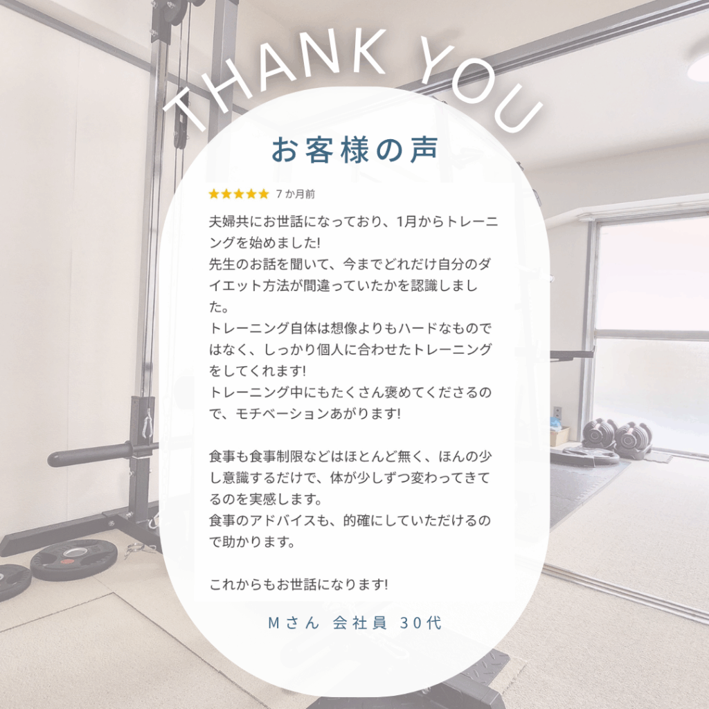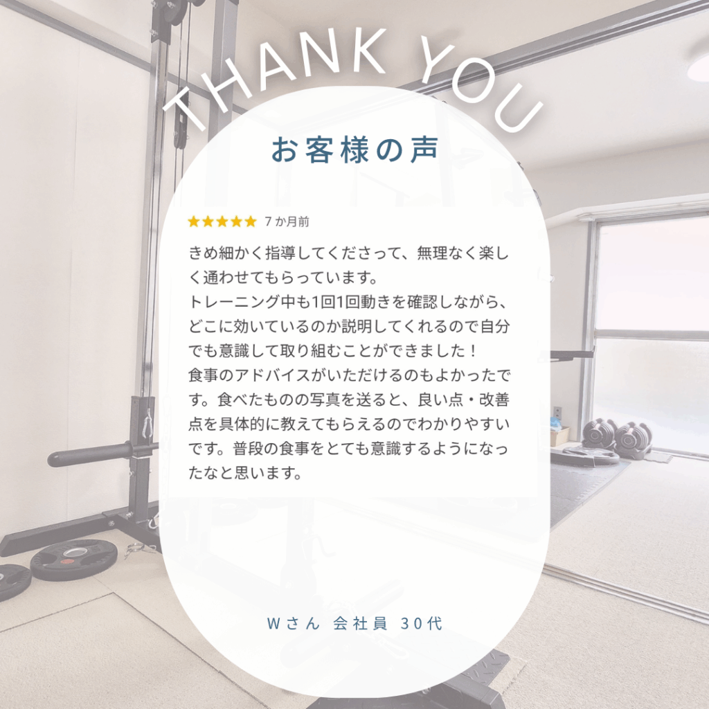 当ジムでは、毎回決まったメニューは行いません。その日の体に合わせた最適なメニューで進めていきます。